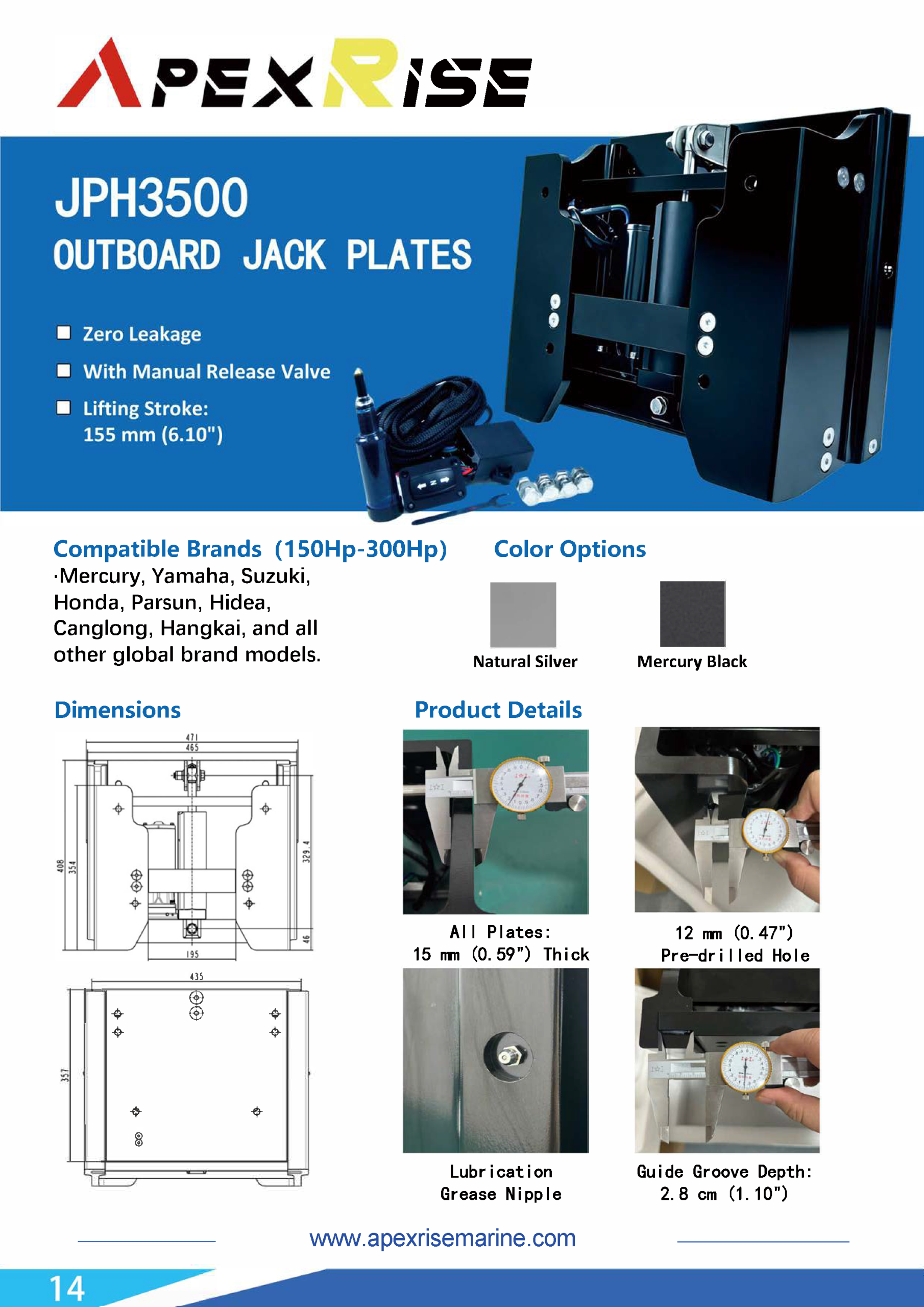 Our Jack Plates are compatible with all major outboard brands and mounting patterns. With a compact footprint and rigid vertical bracket design, ApexRise ensures zero flex under load—even in rough water or high‑torque conditions.