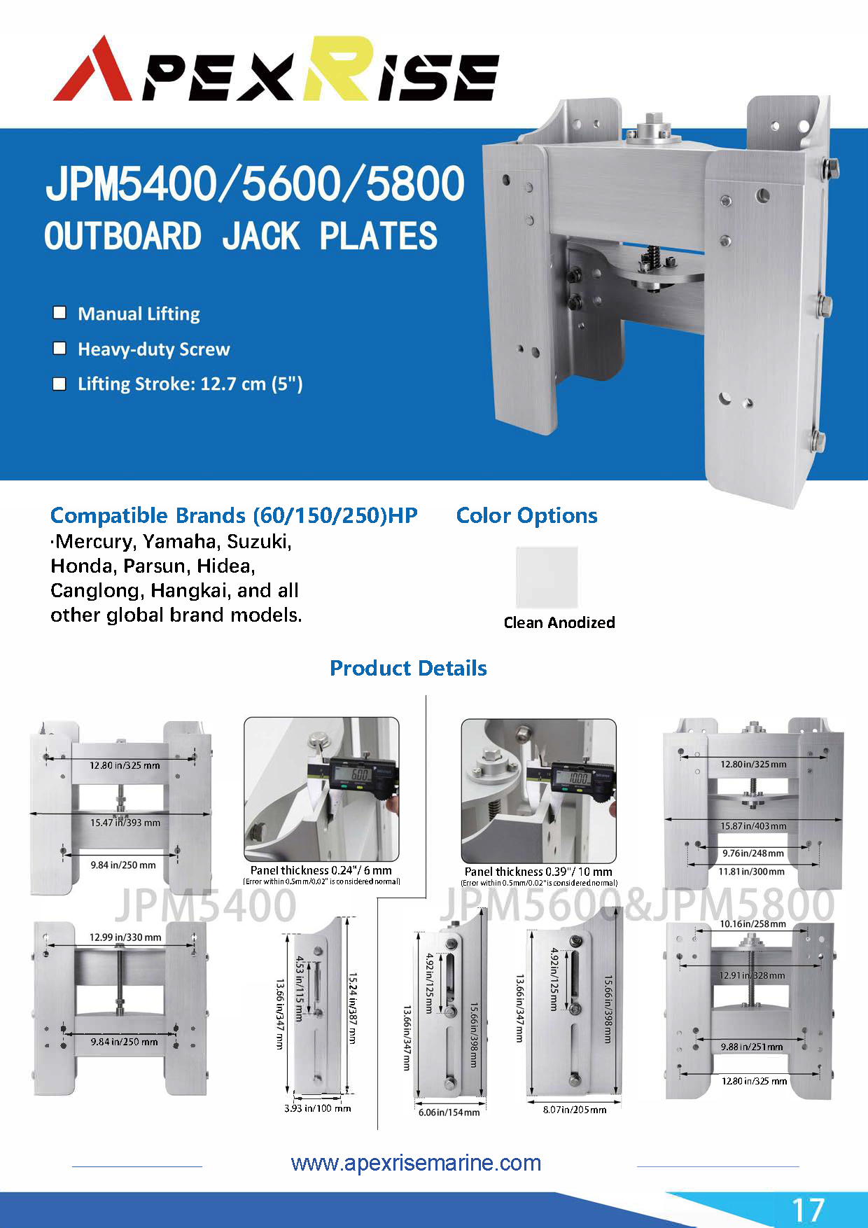 The ApexRise Manual Jack Plate delivers reliable, no‑nonsense engine height adjustment for small to mid‑size outboards. Built from aircraft‑grade aluminum with bronze and brass hardware, it provides smooth mechanical lift without binding — perfect for skiffs, jon boats, flats boats, and lightweight performance hulls.