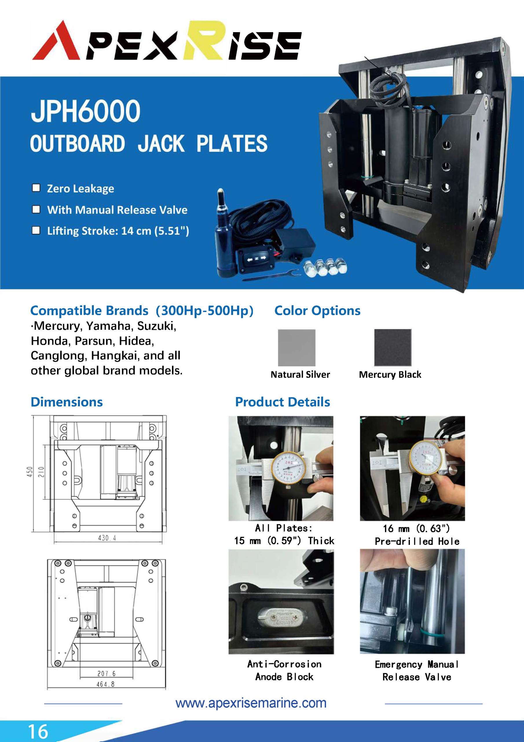 The JPH3000 is engineered for high‑horsepower outboards up to 300 HP. Built from precision‑machined 6061 aviation‑grade aluminum, it offers exceptional strength‑to‑weight performance and stable hydraulic lift that won’t bleed down under load.